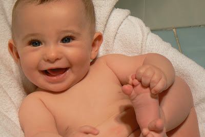Just before Izaac turned five months, this photo was taken. I had just plonked him into the rocker, to get some nudie shots before having his bath. I had no idea I would get such a great shot.